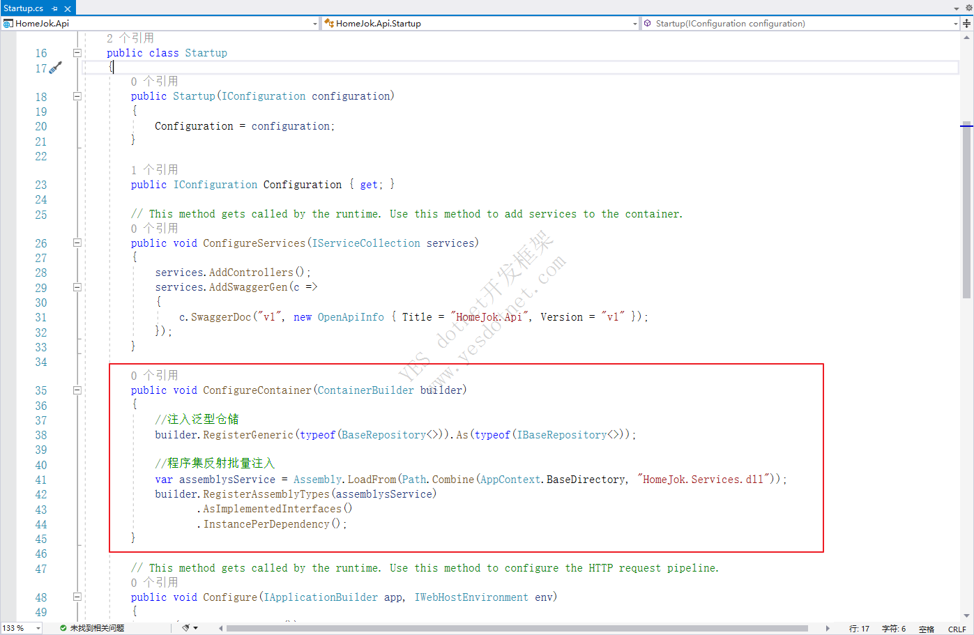 //新建注册类,继承Autofac.Module,修改Startup.cs