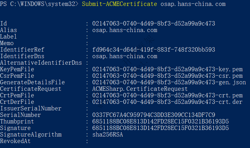PS> Submit-ACMECertificate cert1