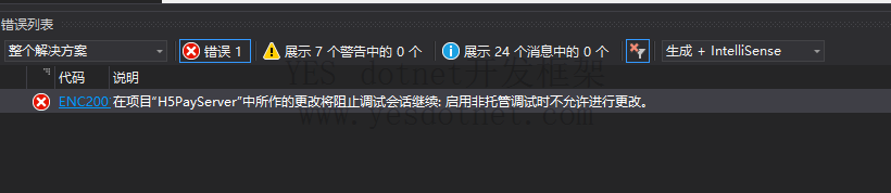 错误 ENC2001 在项目“H5PayServer”中所作的更改将阻止调试会话继续: 启用非托管调试时不允许进行更改。 H5PayServer 1 活动
