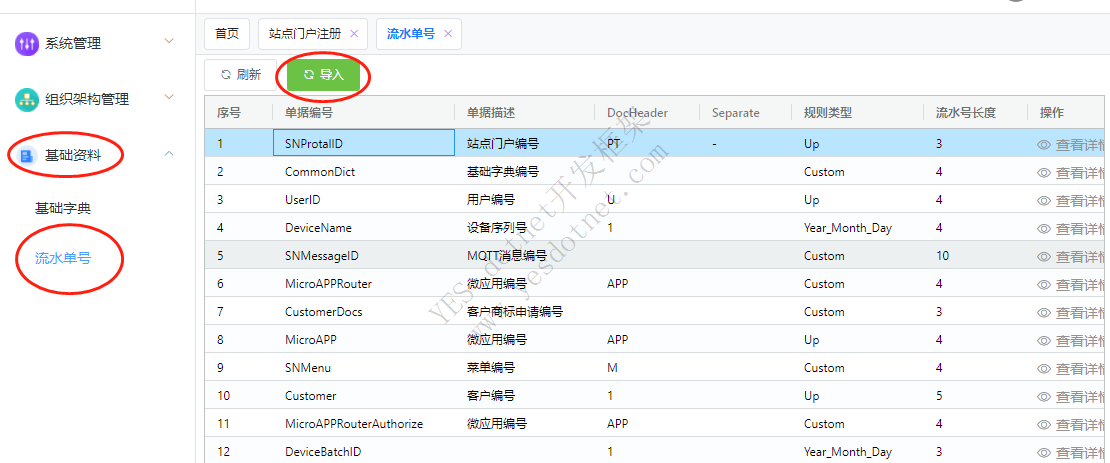 2) 基础资料 → 流水单号 功能中重新导入规则