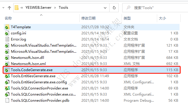打开文件实际位置 解决方案目录 → Tools → Tools.CodeGenerate.exe