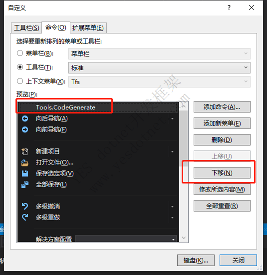 YES-WEB开发框架 VS中配置代码生成器快捷按钮